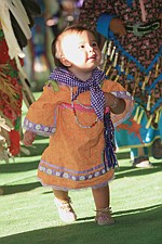 Anapo Magazu, 1, of Pablo, runs around the floor during an inter tribal dance.