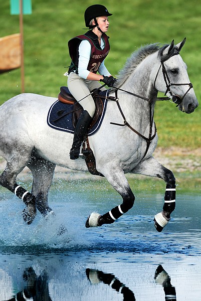 In the senior open division on Friday, moments after a rider was dumped at a jump because a horse lurched to a standstill, Kate Tooke came zooming through the grass on Bella Luna. Near the latter section, the pair eased over a rounded jump and hit the pond in a smooth trot. Then up and out they went as hundreds of onlookers atop the centerfield hill watched captively.