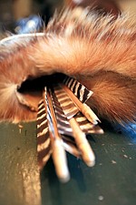 Cahoon trades for obsidian, just like the Salish and Pend d’Oreille tribes did, then he uses traditional flint knapping techniques to shape arrow heads. He prefers to use strong, but typically small-diameter, wild rose shoots for his arrow shafts and wild turkey feathers as fletching. Finished arrows soon find homes in a variety of hand-made animal-hide quivers.