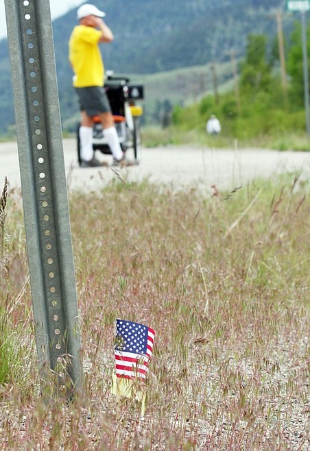"One life. One flag. One mile," is the tag line for Ehredt's personal journey to honor and remember the soldiers who have lost their lives serving in Iraq. The journey of Ehredt, who served in the armed forces 30 years ago and calls Idaho his home, came to a brief halt last Tuesday evening when Ehredt stopped to spend the night in Paradise for an evening's rest and free accommodations.