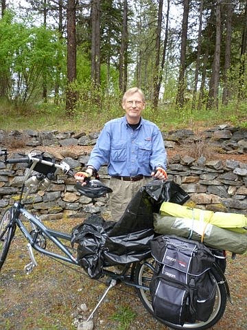 The selected bike for the cross country tour carries a stove, air mattress, food, toiletries, clothes, sleeping bag, a kindle reader and fountain pen, which are held together by bungee cords. Hall anticipates finishing his bike ride to the border by the middle of July, but said there are outside variables such as illness, bike repairs and weather that could prolong the trip.