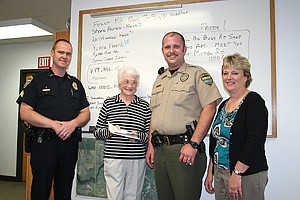POLSON - Officer Brian Kunz of the Polson Police Department honored Polson area citizen Doreen Trusler last Wednesday with the Saved By the Belt Award.