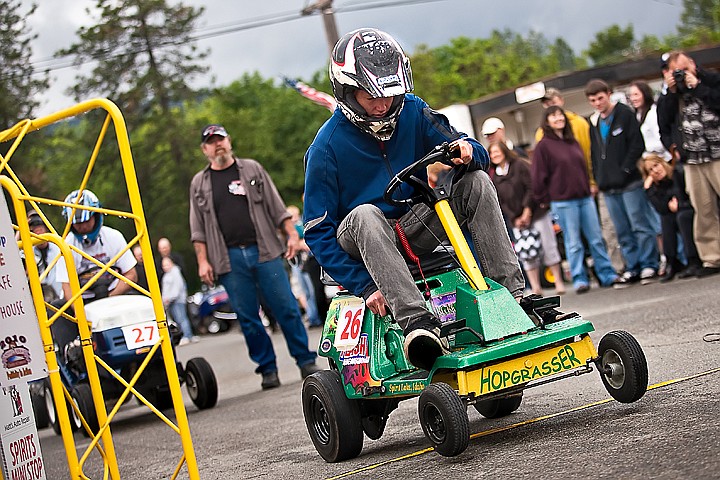 Racer Bruce Swofford, 59, of Coeur d'Alene, asked, "What do you do with a lawnmower that doesn't cut grass anymore?"