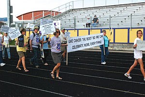 After the survivor's lap, family and friends were encouraged to join the survivors in a second lap. Many linked arms to walk around the track as more tears and smiles were shared. Nunlist was joined by her daughter and husband as she took the second lap with her head held high.