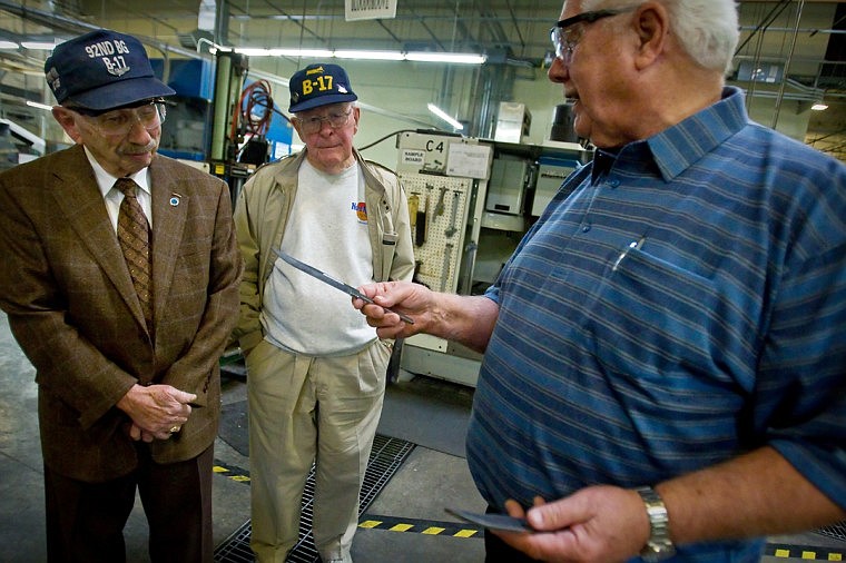 With other B-17 pilots by his side, Groen, the new president of the association, was honored for his service on Monday by local veteran Graham Crutchfield with a Buck knife at Buck Knives in Post Falls.