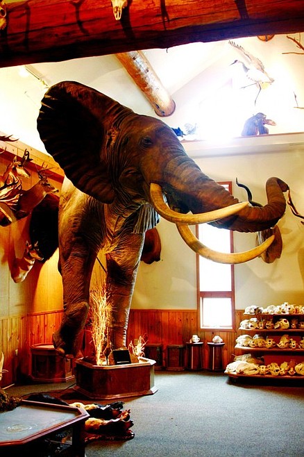 Good thing the beasts weren't alive anymore. Shawn Andres took care of the elephant in 2006 during one of his African hunting trips and now it stands in the showroom of Alpine Artistry, Andres' taxidermy business in Arlee.