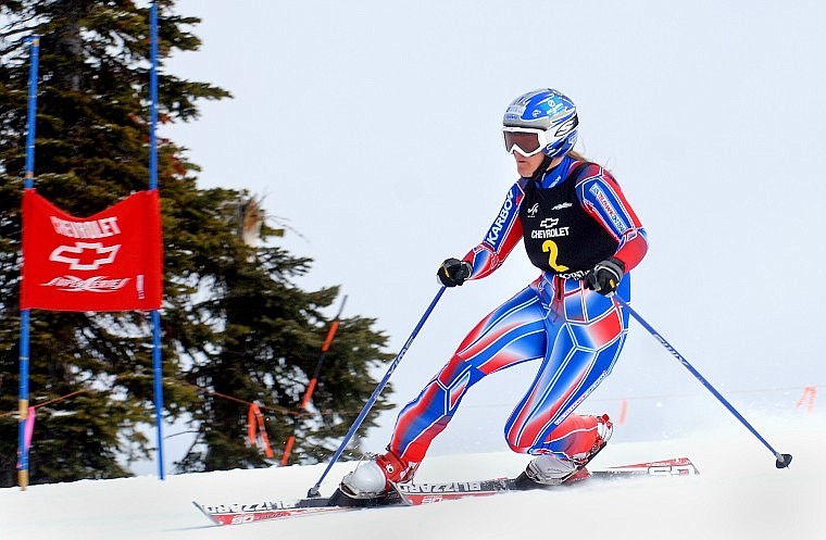 Four-time women’s national champion Kelsey Schmid-Sommer of Whitefish begins her run at the top of Big Mountain.