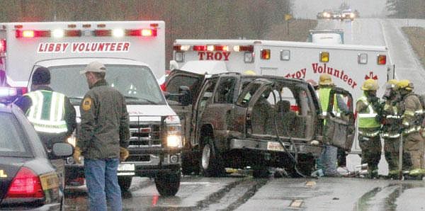 Both vehicles collided at highway speed, Ford said. It was raining and the road was wet at the time of the accident, which occured at about 10 a.m., at mile marker 25.1 approximately six miles west of Libby.
