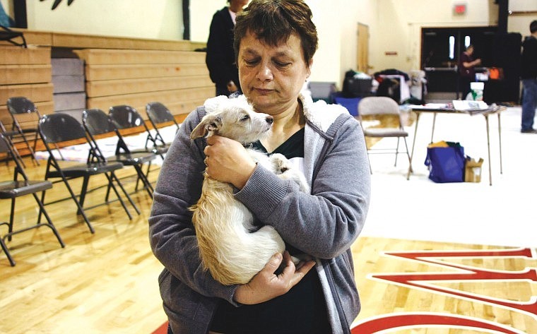 PABLO - As the anesthetic wore on six-month old Scruffy, his owner Ramona Jewett held him tightly during his last waking moments before he would completely go under for a neuter operation.