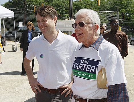 ATLANTA - Most candidates for the state Legislature would love to campaign door-to-door with a former president, but Jason Carter wanted to keep his famous grandfather away for a while.
