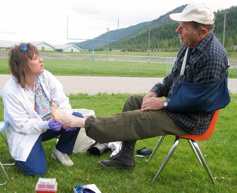 "That's cold," Roger Hearst said loudly in a shocked voice as he set his bare foot down on the grass. Needless to say, Chryse Foster and others who were around only laughed as the grown man jerked his foot up, setting it back down. Hearst, who is a diabetic, was getting his feet checked by Foster before walking around the track at Superior High School Monday evening.