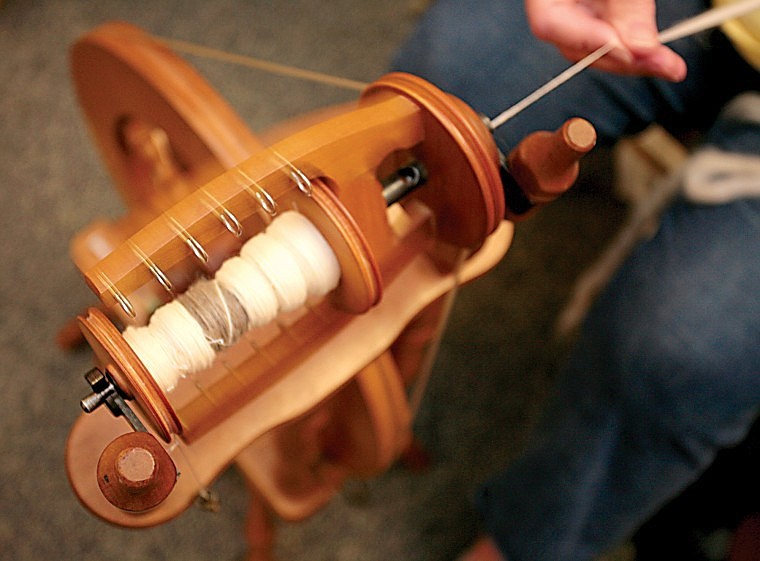 Take a step back in time by visiting Ronan's Red Poppy on the third Thursday of every month from 11 to 2 p.m. There, you will find a lovely group of ladies sitting and chatting, each with one foot rhythmically pressing the pedal of a spinning wheel and fingers slowly guiding long, soft fibers into a swirling thread of yarn.