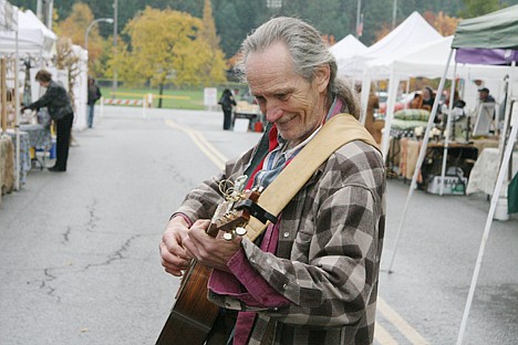 Instead of setting up on a street corner — like he normally does at the Kootenai County Farmers Market in downtown Coeur d’Alene — the eccentric minstrel strolled the grounds, strumming his acoustic guitar and singing a few melodies.