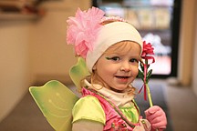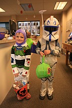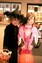 Kila Cannon and Alex Dupuis visit the Lake County Leader office during Polson city's Trick or Treat Friday.
