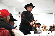 Jay Bodner, the natural resource director for the Montana Stockgrower’s Association, came to the meeting from Helena to discuss some of the actions his group is hoping to take on the wolves. One of the biggest issues, he said, is the “arbitrary line” that designates wolves as “endangered” in the northern part of the state and “experimental” in the southern areas. The endangered status, which covers Lake County and most areas north of Interstate 90, means stockgrowers cannot shoot a wolf, even if it is attacking livestock, Bodner said. While wolf attacks on livestock have begun, Bodner said they would occur more frequently as the animal continues to repopulate, something he said the stockgrowers had predicted while fighting wolf reintroduction in the 1990s.
