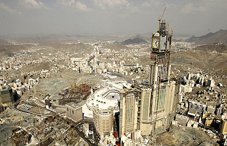 MECCA, Saudi Arabia - A dozen glittering skyscrapers tower over Islam's holiest shrine, the Kaaba, boasting hotel rooms with 24-hour butler service and luxury marble bathrooms. Below, throngs of Muslims perform the annual hajj pilgrimage, many of them impoverished, sleeping in the streets.