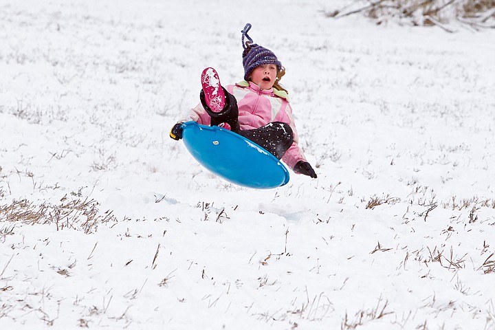 Zyrie Weeks, 11, ditched homeschool Monday to go sledding with her older brothers, something they didn't do enough of last winter.