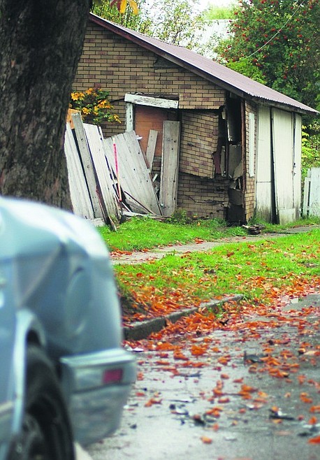 According to neighborhood residents, a red vehicle heading down Superior crashed through a railroad tie fence and into a shed on residential property. Had the storage structure not been there, the car would have hit a bedroom where a woman and her infant child slept.