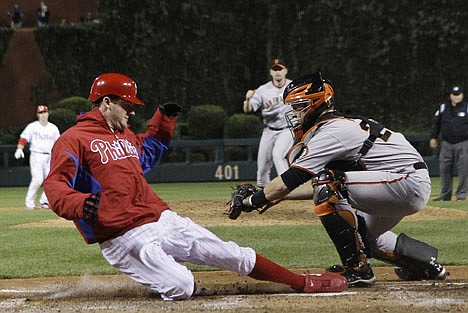 Notes: Howard spent part of his day watching the Eagles on the field in one end zone. He led a cheer and then hitched a ride with the Phillie Fanatic, riding on the back of the furry green mascot’s four-wheeler to get to the ballpark. ... Former Phillies outfielder and current broadcaster Gary Matthews, the 1983 NLCS MVP, threw out the first pitch. ... Sanchez beat the Phillies twice in the regular season, allowing just two runs in 13 innings. He’s 3-1 with a 2.48 ERA against them in the regular season, losing 1-0 for his only defeat. ... Giants leadoff hitter Andres Torres struck out swinging four times.