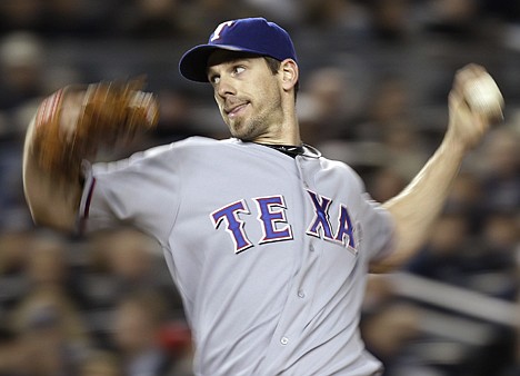 The ace of October went through the New York Yankees like a buzzsaw again, striking out 13 and pitching the Texas Rangers to an 8-0 victory Monday for a 2-1 lead in the best-of-seven AL championship series.