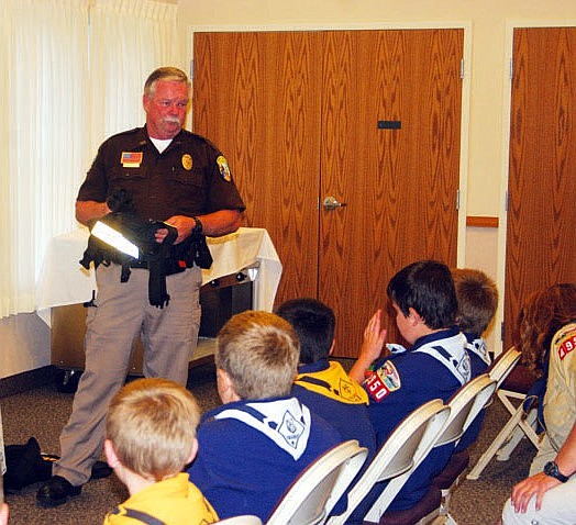 Reserve Deputy Ernie Ornelas, Balenger and Max visited the cub scouts last week to talk to the boys, ranging from eight to ten years old, about Max’s role in the department, the department and being a police officer in general.