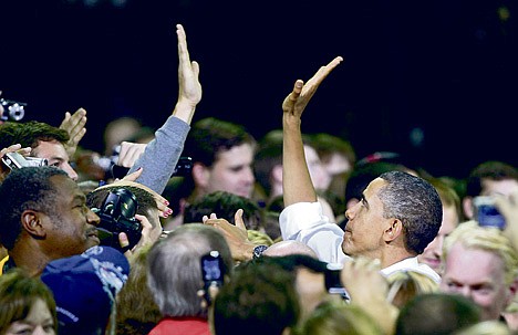 Later, trying to rekindle the enthusiasm of his presidential race, he all but ordered thousands of cheering supporters at a packed University of Washington arena to get out and vote, even though he's not on the ballot. Hoarsely shouting over the applause, he said, "If everybody that voted in 2008 shows up in 2010, we will win this election. We will win this election. But you've got to come out and vote."