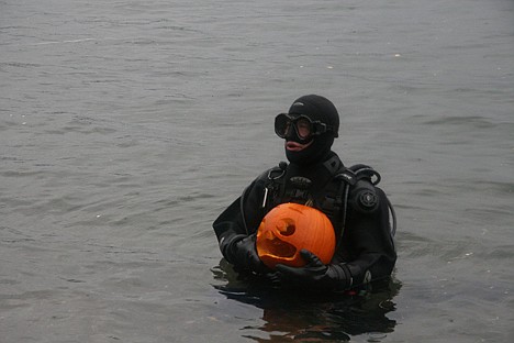 And yet, buoyancy notwithstanding, a small group of intrepid SCUBA divers assembled Saturday morning for an ambitious event: The third annual Underwater Pumpkin Carving Contest. Hosted by Divers West in Coeur d'Alene, the dive brought eight contestants to the west end of Sanders Beach - seven more, it should be noted, than participated last year.