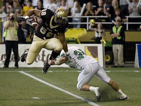 Late in the half, Caitlin Solum caught a short pass from Landry near the Vandal 10-yard line, but Keo came up and drilled him and popped the ball loose, and Andre Ferguson recovered at the 16.
