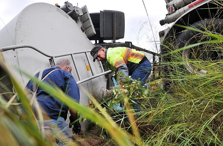 Fuel Tanker's Pup Trailer in Ditch - Dirt and Brush