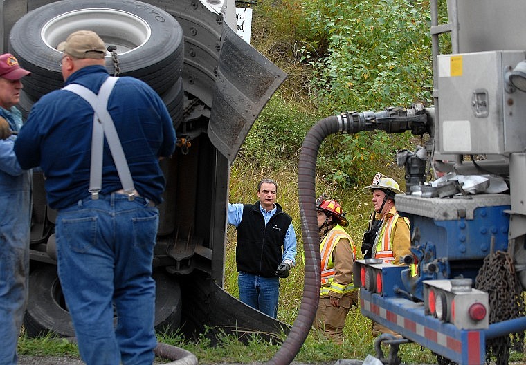 Fuel Tanker's Pup Trailer in Ditch - inspecting