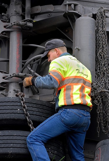 Fuel Tanker's Pup Trailer in Ditch - Wrapping Chains
