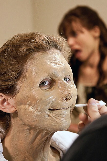 The Coeur d'Alene resident had to sit still for nearly three hours each day before shooting the picture as makeup crews turned the 29-year-old's toned skin into a melting mess of wrinkles and woes.