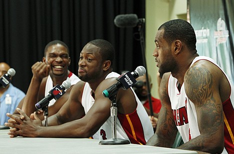 Though hardly in need of publicity, the threesome assembled for a 20-minute news conference Monday during Heat media day, hours before the team departed to begin training camp Tuesday in the Florida Panhandle.