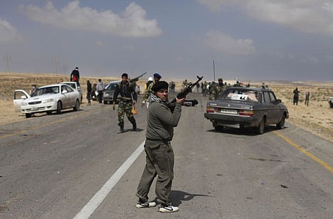 AJDABIYA, Libya - Libyan rebels clinched their hold on the east and seized back a key city on Saturday after decisive international airstrikes sent Moammar Gadhafi's forces into retreat, shedding their uniforms and ammunition as they fled.