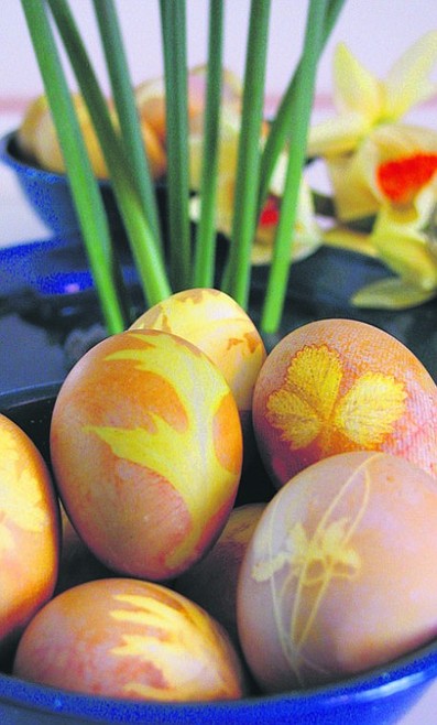 If you're looking forward to Easter and its egg-inspired festivities, you'll appreciate a letter I received from a fellow farmgirl. "I remember the excitement of dyeing eggs each Easter," she wrote. "We'd buy a supermarket dozen and a package of dye tablets, and I'd decorate until my fingers were as colorful as the egg shells. It never seemed like those 12 little canvases were enough - until it came time to actually eat them. All painted up, they just didn't seem like food. Now that I'm grown and have chickens of my own, I have a whole new respect for eggs. They're so much more to me than squeaky Styrofoam cartons of bland breakfast fare (or annual art projects). I know them intimately, recognizing them by textures, shapes, and sizes. The aqua-green eggs are gifts from my hen, Hazel, the small creamy ones are from Cleopatra, the big speckled browns from Goldie. I know how warm eggs feel when you gather them fresh from the nest, and how delicious they are when hens have been feasting freely in the fields. Inspired by this newfound reverence, I'm hoping that you might be able to share some of your eggs-pertise, MaryJane. I'm looking for a more natural method of dying eggs with my kids this Easter, and I'd also like to find a delicious recipe for preparing the precious food within. Any ideas?"