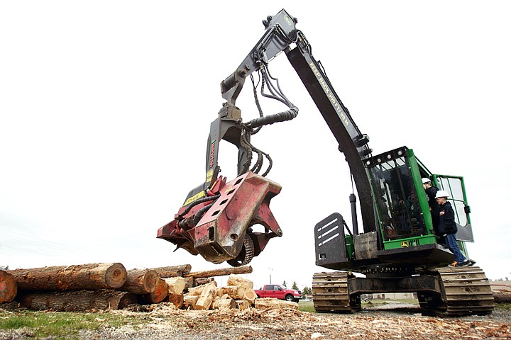 Andy Lincoln grinned after observing how to control a log processor, a colossal metal arm that can de-limb trees in seconds.