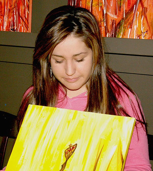 Berry is currently raffling off the paintings at her mom’s coffee shop, the Big Sky Bistro and Art Bar. She hopes to raise up to $400 which she will use to “adopt” a child in Africa.