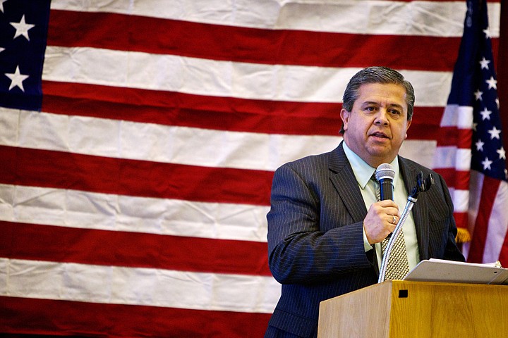 The former U.S. Senate Republican candidate from Alaska and veteran spoke during the third annual Tax Day Rally sponsored by the Tea Party Patriots of North Idaho before roughly 400 people on Thursday night at the Greyhound Park and Event Center.