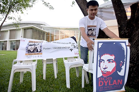 "The chances of watching Bob Dylan live are not many, and he's no longer young," said Hoang Dao Cam, 42, who flew from the capital, Hanoi, for the show with five other hard-core fans. He said his father taught him English at age 6 by singing "Blowin' in the Wind" to him. "I just cannot miss this opportunity."