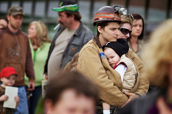 Brandon Harrington, 28, didn't know Larry Marek. But Harrington still attended the service with his yellow mining helmet donned.