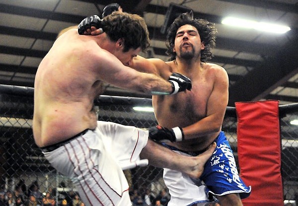 Polson's Alonzo Bringsyellow throws a punch while Great Falls' Jason Mustain puts up a kick.