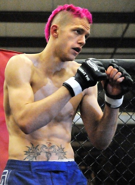 Kalispell's Gus Nolte puts up his dukes before starting his fight against Plains' Anthony Young.