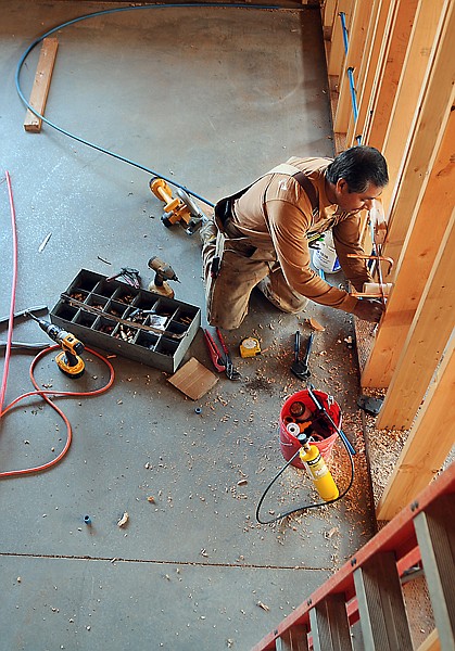 Joe Hermosillo installs plumbing for the new classrooms at Fair-Mont-Egan School.