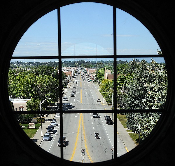 Main Street runs north toward downtown Kalispell in this view from the new tower windows of the Flathead County Courthouse. The new windows are part of the $2.6 million renovation of the 109-year-old building.