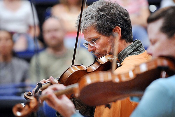 Concertmaster Sam Taylor and members of the Glacier String Quartet play one of Mozart’s last string quartets, No. 21 K. 575 in D Major, which was written for the king of Prussia, on Tuesday afternoon during open rehearsal at the O’Shaughnessy Cultural Arts Center in Whitefish. The quartet will perform with April Lane this evening at the O’Shaughnessy Center as part of the weeklong Festival Amadeus.