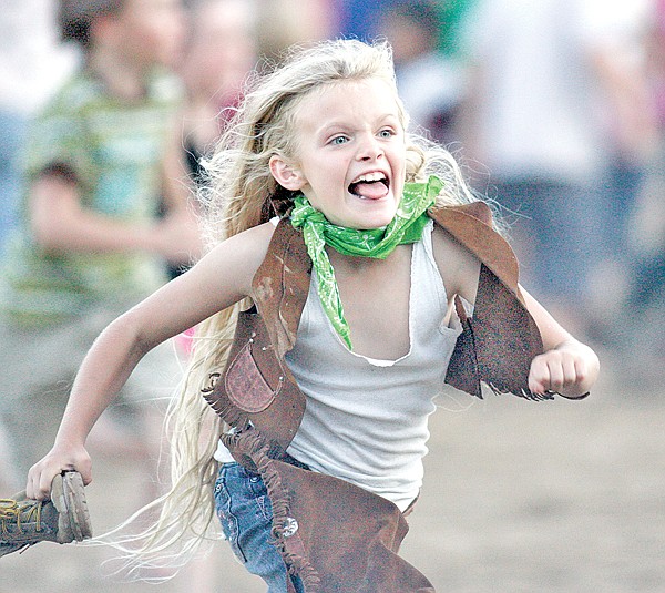 Eight-year-old Savannah Wooden participates in the boot race Saturday night.