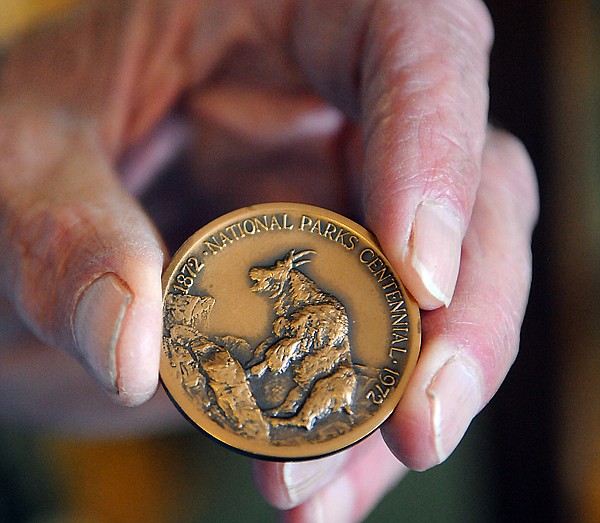 Ed Rothfuss displays a comemorative coin in his for sale collection on Monday, July 25 in Creston.