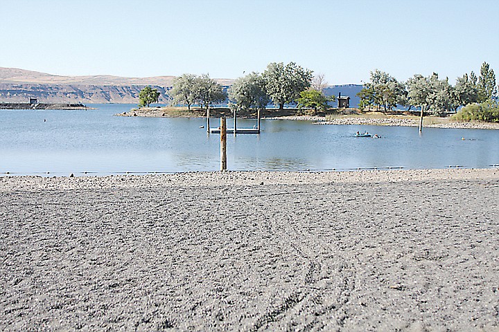 COULEE CITY - A receding shoreline at the Coulee City park's swimming area is one sign the 30-foot lowering of Banks Lake is progressing.