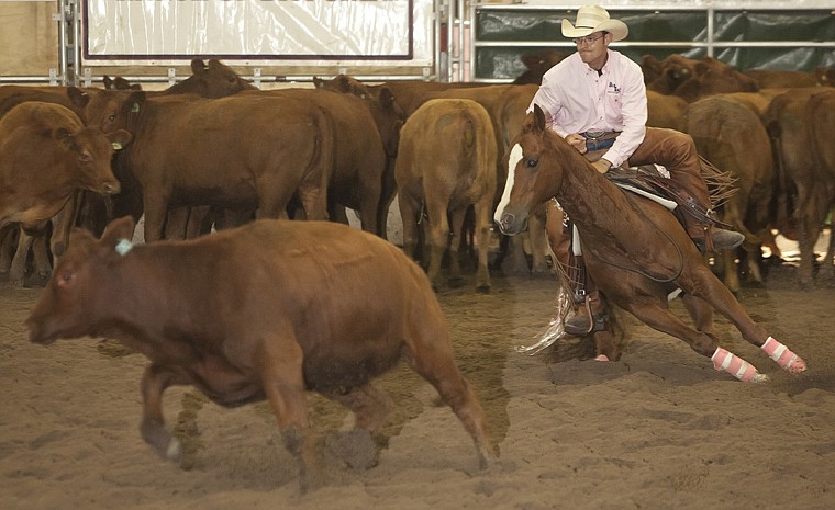 Eli Auger, riding Rockin By Choice, finished in second place in the brideless cutting competition during the 5th annual Big Sky Futurity & Aged Event at Majestic Valley Arena Friday night.