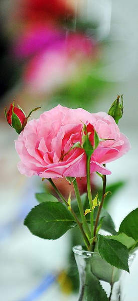 A blue-ribbon-winning Queen Elizabeth rose is displayed at the Northwest Montana Fair. The rose was grown by Sharon Askelson of Kalispell, who competes in the advanced category and is a member of the American Rose Society. “We didn’t have much for roses this year because it’s been so hot,” said Askelson. “The fair is the wrong time of year for roses. Most of the roses are done right now.” Askelson has been competing at the fair for more than 30 years.